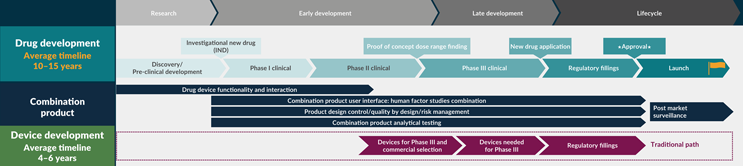 One of the common challenges in the combination product industry is the lack of understanding of the requirements for developing a combination product. This includes areas such as development processes, human resources, cross-functional coordination, budgeting, and timelines. The earlier the device needs are considered in the drug development process, the more efficient the development of the combination product is and the more opportunity there is to address any drug-device integration and regulatory challenges.