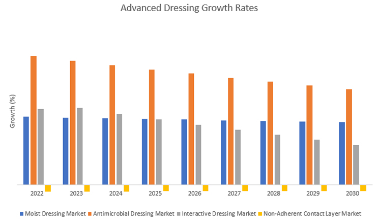 The total advanced wound dressing market is growing noticeably. When looking at how each segment is growing, antimicrobial dressings are growing at the fastest rate. This has to do with its use in fighting infections, which includes facility acquired, or nosocomial, infections that are not reimbursed by Medicare.